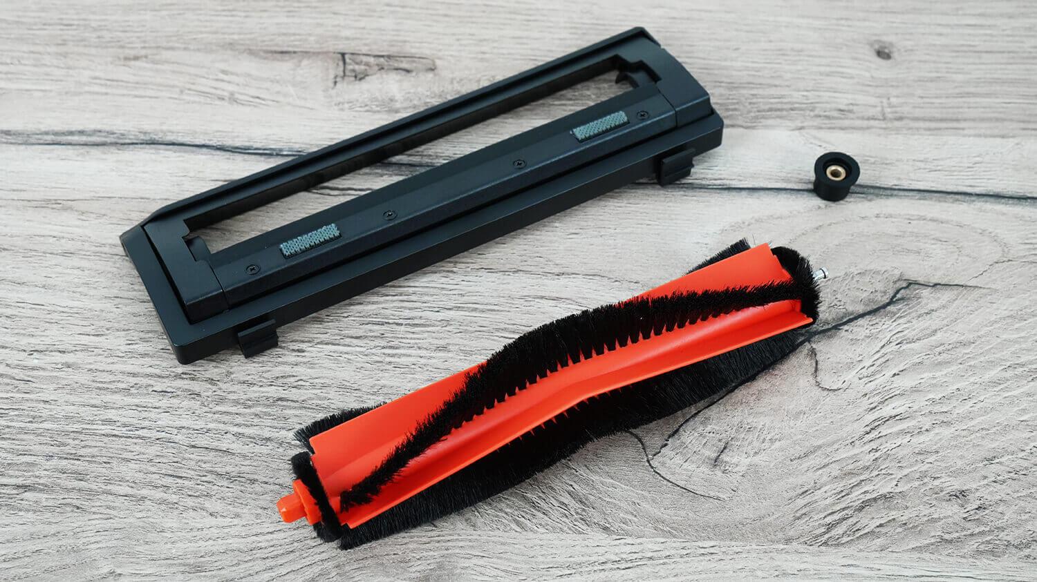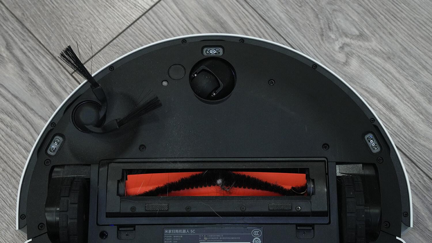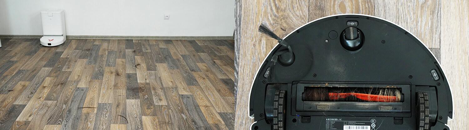 В бытовых условиях после недели запуска в квартире с домашним питомцем и двумя девушками тоже видим, что результат не поменялся — на центральную щётку немного намоталось волос, а боковая щётка чистая.