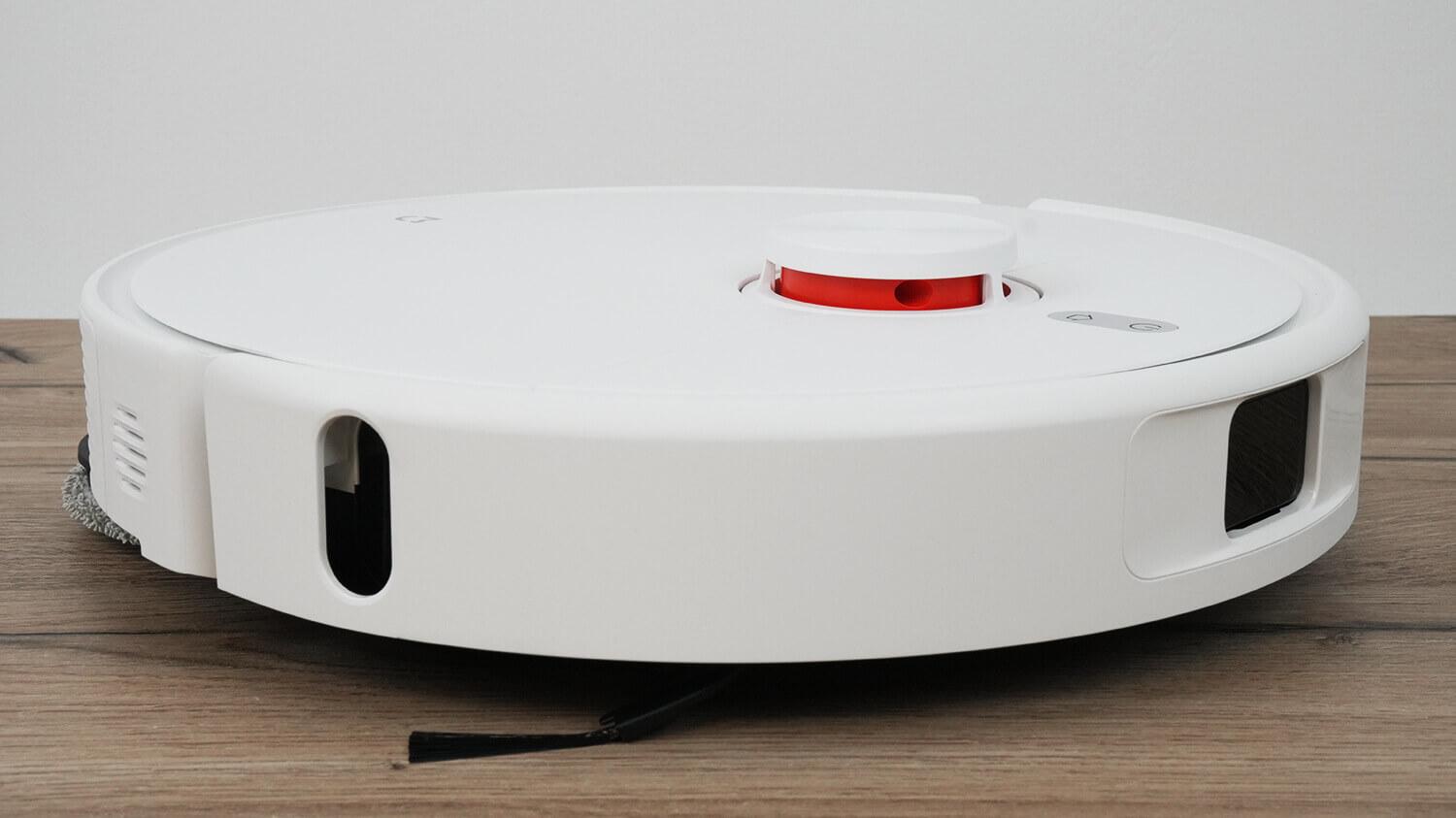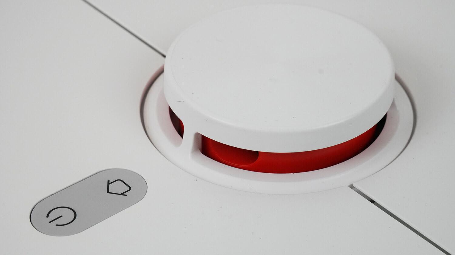 Лидар оснащен подпружиненной крышкой, предотвращающей застревание робота под мебелью. Рядом с ним размещено две механические кнопки управления.