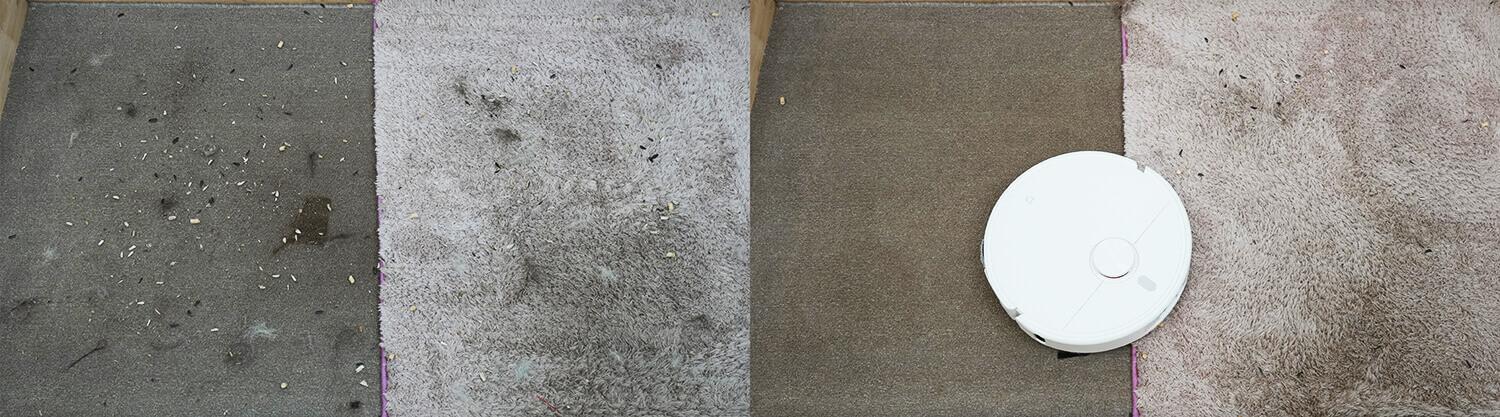 - Наблюдаются проблемы с уборкой на коврах со средним ворсом. Робот объезжает участки ковра, определяя ворс препятствием, как раз-таки из-за системы датчиков на бампере. И даже если он без проблем будет заезжать на пушистые ковры, мощности и прижима турбощётки не хватает для тщательного сбора мусора на таких покрытиях.