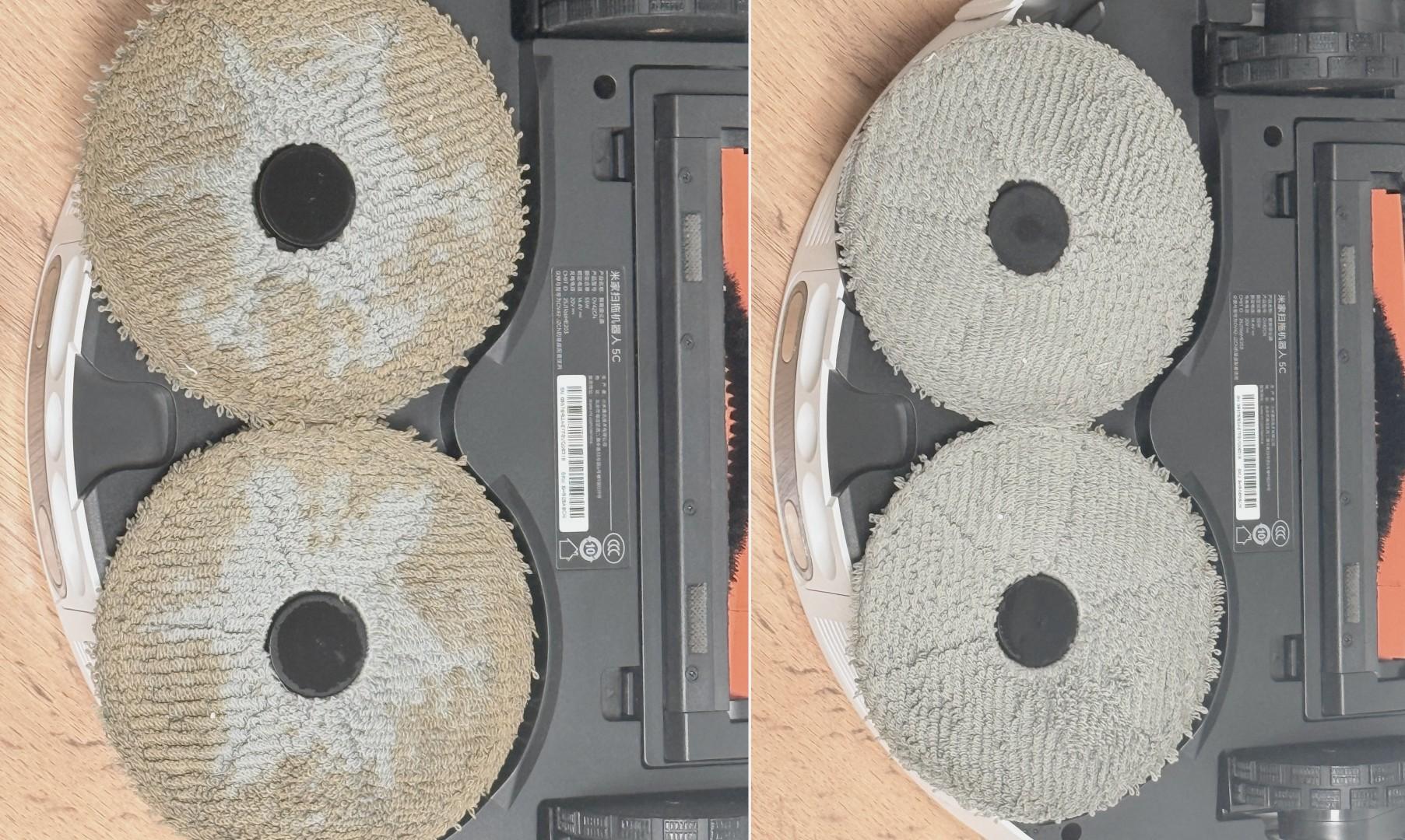Ну и сразу же хотелось бы рассказать про эффективность самой станции. Начнем с качества стирки салфеток. Даже после сложных тестов салфетки значительно лучше выглядят после стирки на станции. Хотя всё же видно, что цвет салфеток поменялся и вычищены они не идеально, что связано с отсутствием подогрева воды и автоподмешивания моющего средства.