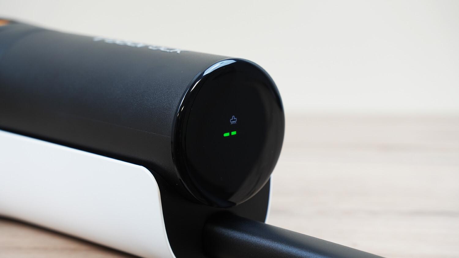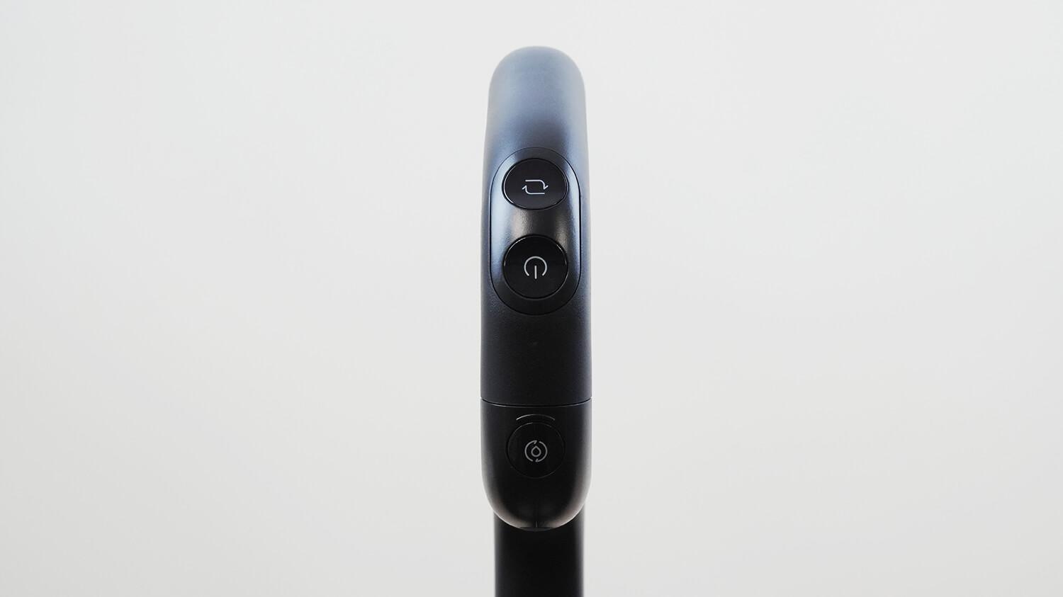На ручке размещены три механические кнопки управления: включение/выключение питания, переключение режимов работы и запуск функции самоочистки на станции.