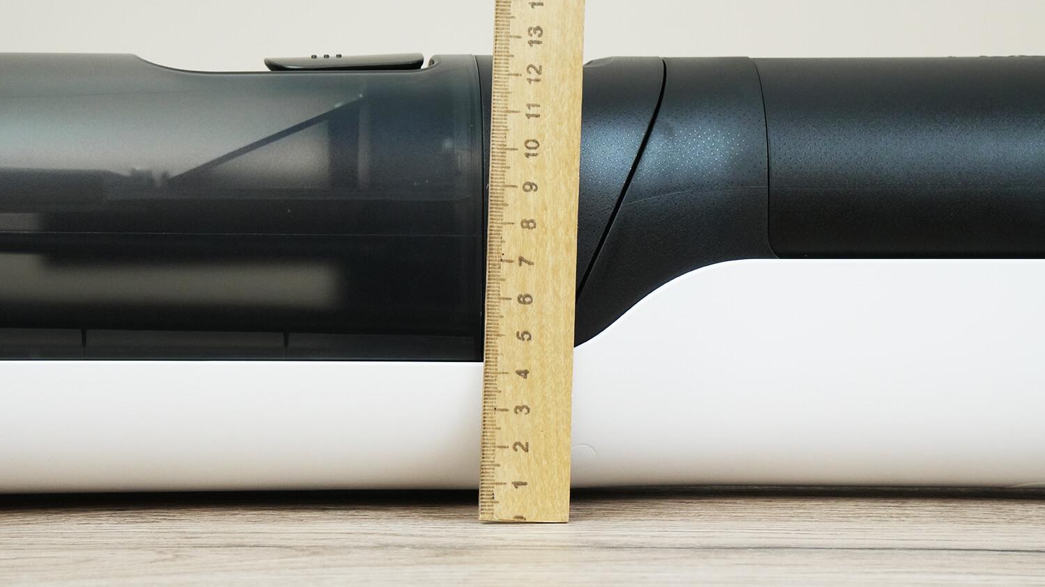Важно заметить, что угол наклона пылесоса составляет 180 градусов, что дает возможность мыть им пол под низкой мебелью. Высота пылесоса в состоянии лежа 12,5 см. В такие просветы он и залезет.