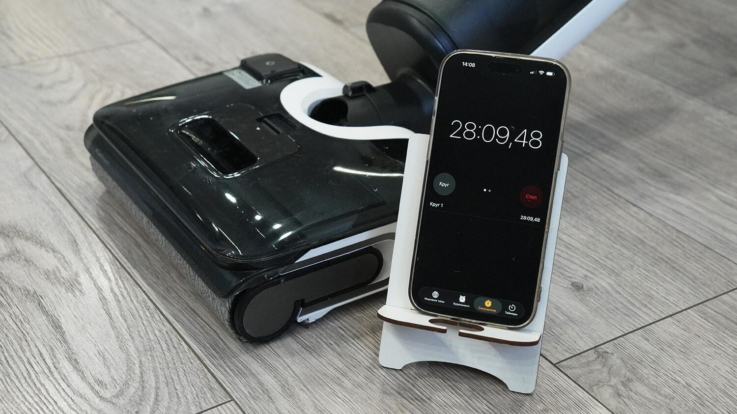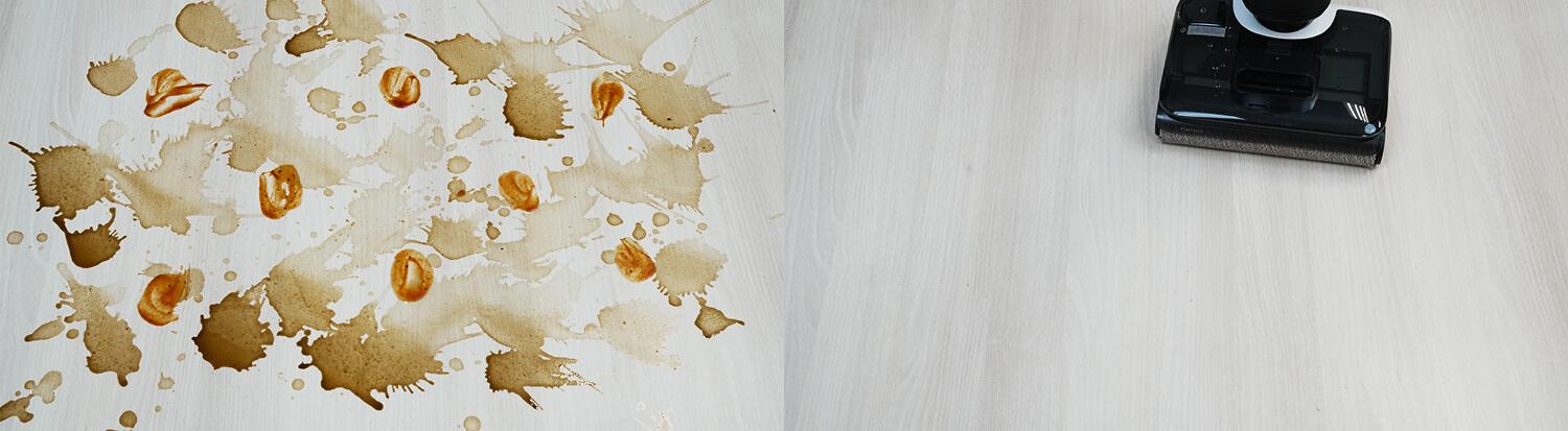 Помимо стандартной мойки пола, пылесос можно задействовать и для сбора жидкостей. В тестах он без затруднений убрал даже вязкую смесь из сырого яйца и муки — всё оперативно ушло в резервуар для грязной воды, без размазывания по поверхности.