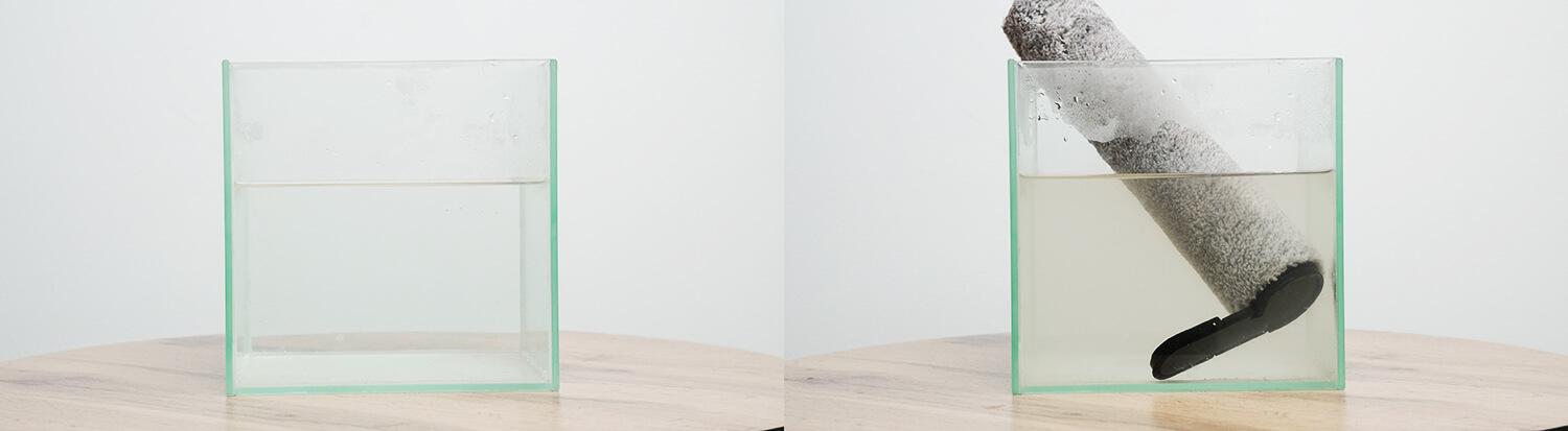 Ну и проверил чистоту роллера после всех тестов и самоочисток, замочив его на 2 минуты с каждой стороны в горячей воде. Видим, что вода немного поменяла цвет.