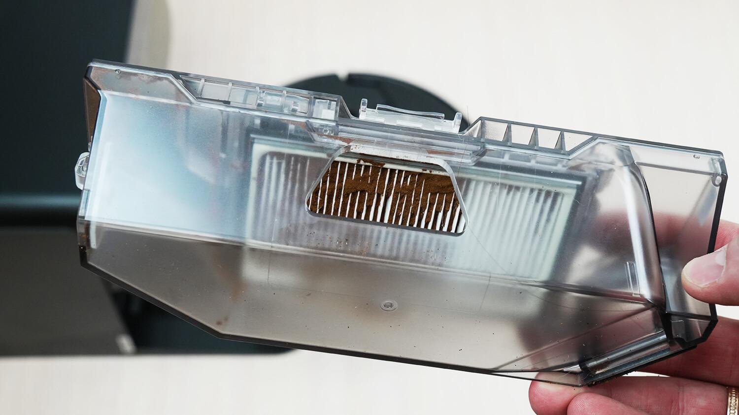 Сразу же после «грязных тестов» проверил, насколько хорошо самоочищается робот-пылесос. Вернул его на станцию и запустил самоочистку. Результат хороший.