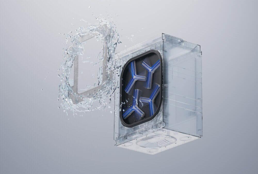 Он оснащен функцией двустороннего распыления чистящей жидкости, силой всасывания, достигающей 5600 Па, тонким корпусом высотой 67 мм и управлением не только через пульт, но и через приложение.