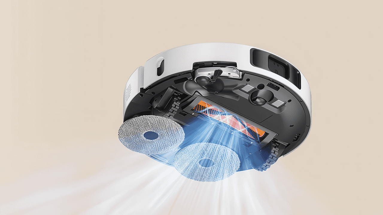Теперь о роботе. Традиционно для флагмана он собрал в себе ряд передовых возможностей. Тут и станция формата «Всё в одном» со всеми подогревами, и очень точная система распознавания предметов с подсветкой, и функция удаленного слежения за домом, и заезд лидара в корпус для уборки под 9 см мебелью, и в реальной высокая сила всасывания, как заявленная, так и цифрах. Ну и, конечно же эффективный чистящий модуль.