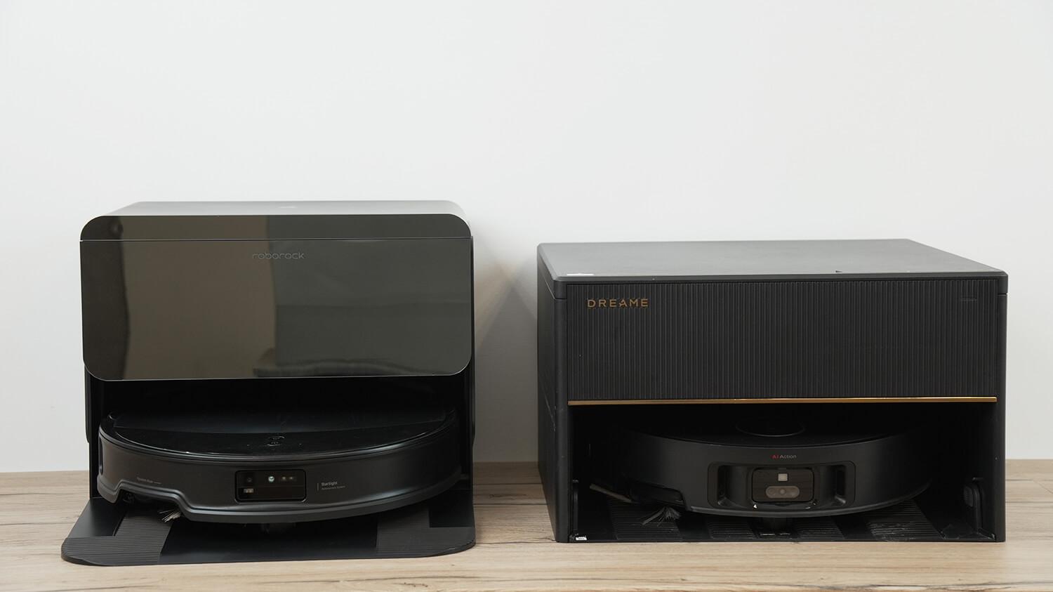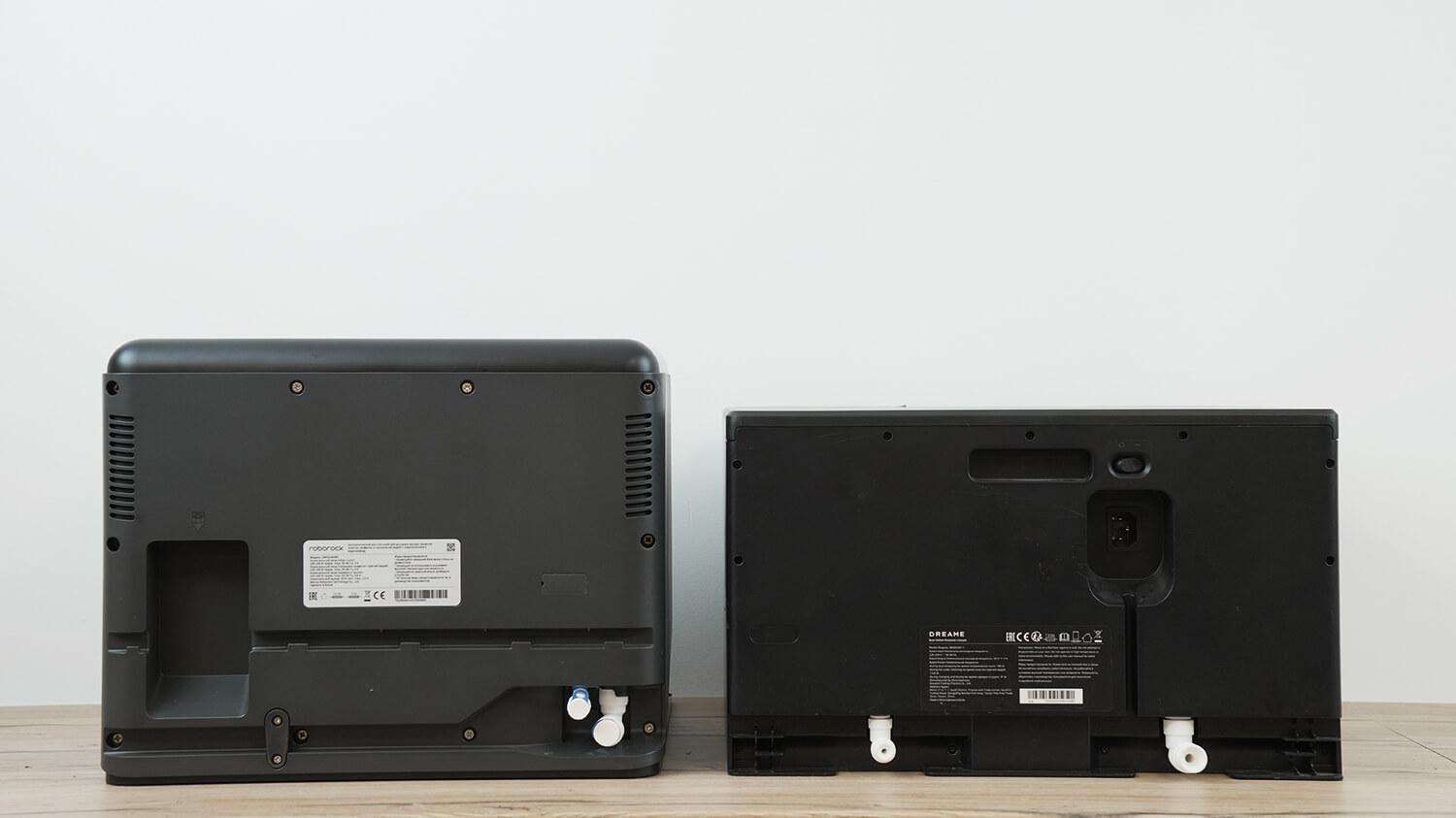Теперь сравним станции, что более интересно. Ну, во-первых, они отличаются по размеру. Встраиваемая станция Dreame немного ниже и меньше глубиной, но при этом и немного шире.