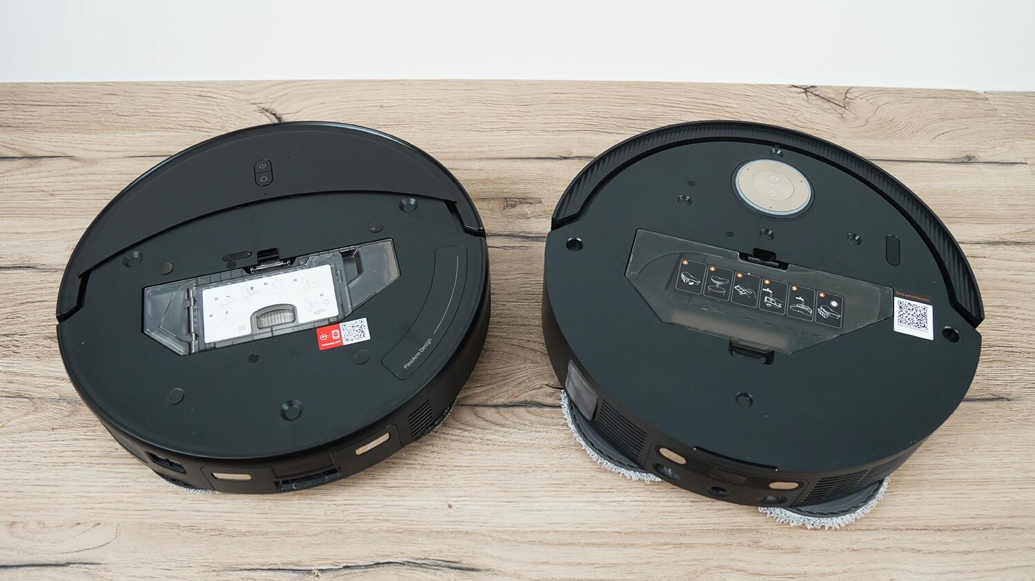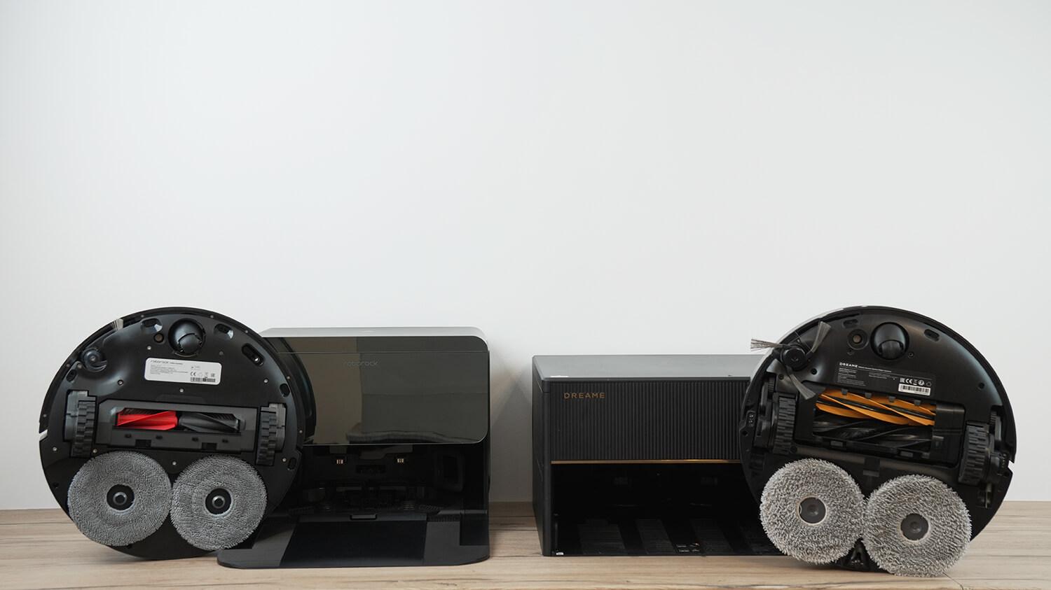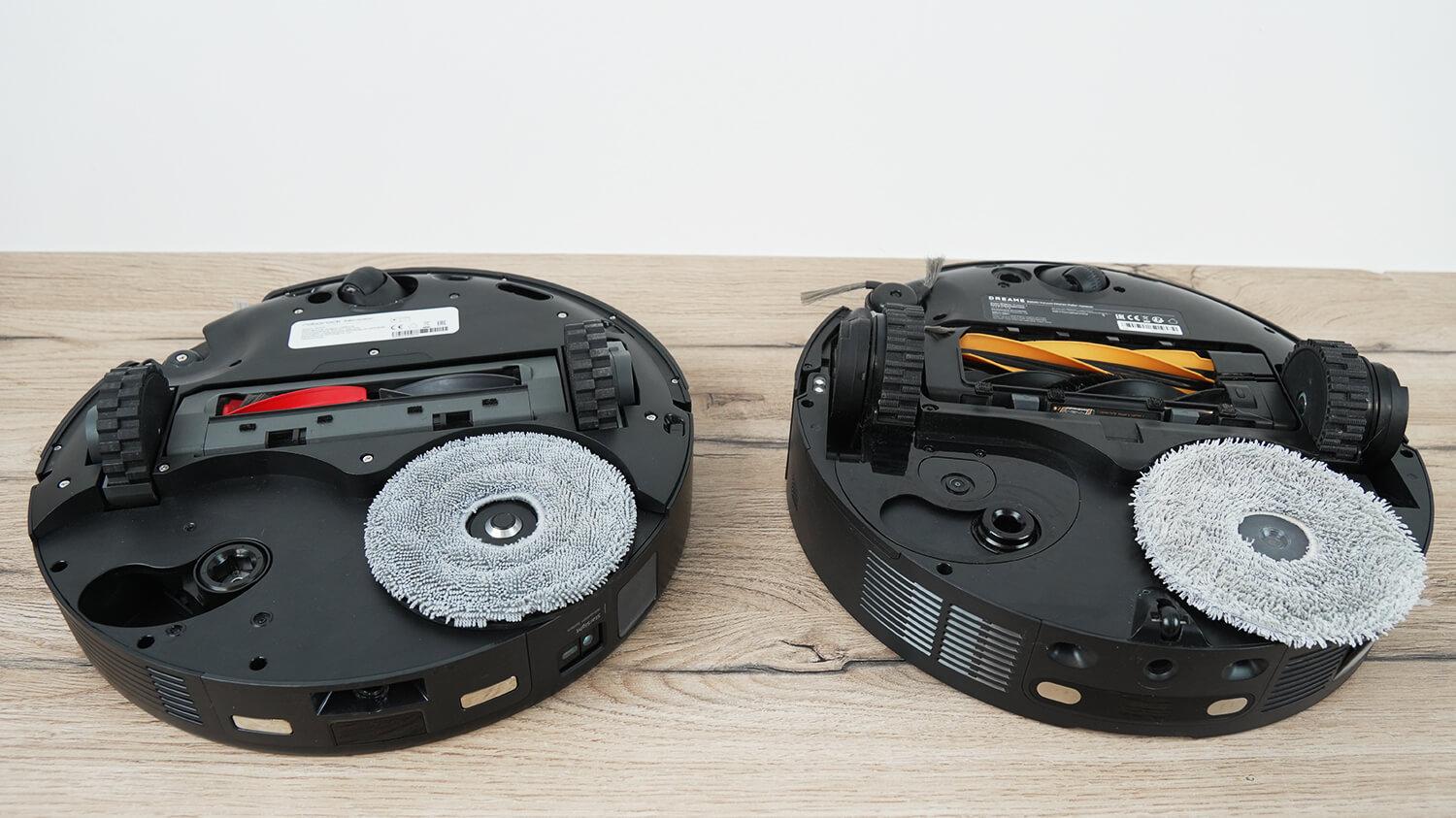 Салфетки на первый взгляд одинаковые и оснащены механизмом выезда к краю, но у Dreame X50 Master реализован ещё и механизм заезда задом в углы и прокручивания корпуса в просветах под мебелью. Этим он лучше конкурента.