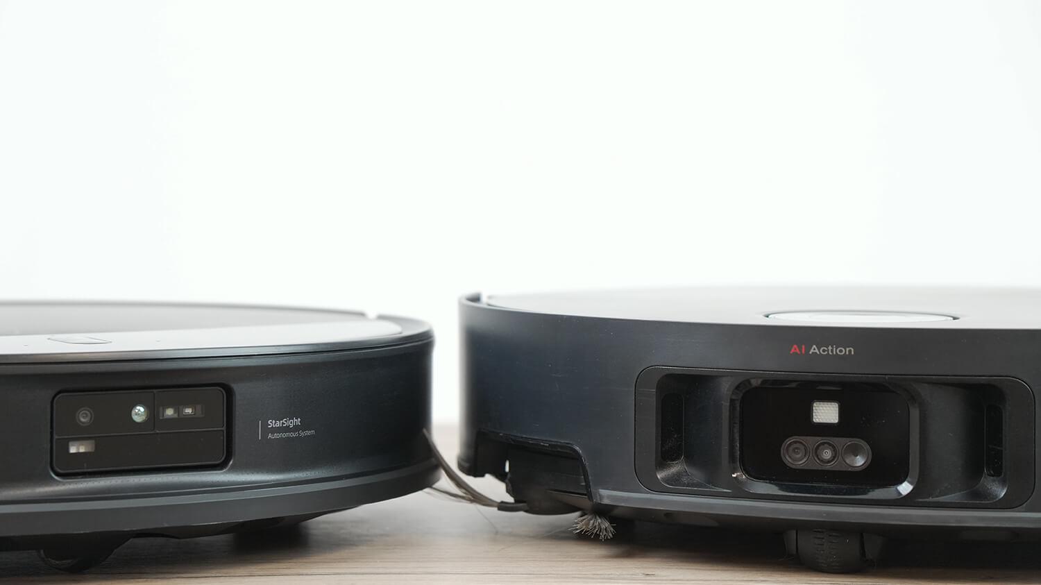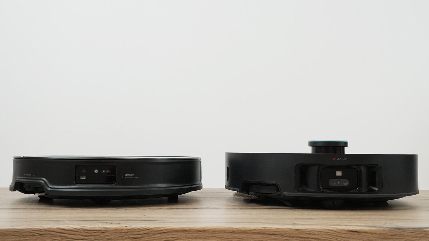 Дальше сравним конструкцию роботов-пылесосов и их станций. Оба робота круглой формы и выпускаются в черном цвете. Оба оснащены точной навигацией, работающей в тандеме с системой распознавания предметов с подсветкой и функцией удаленного слежения за домом.
