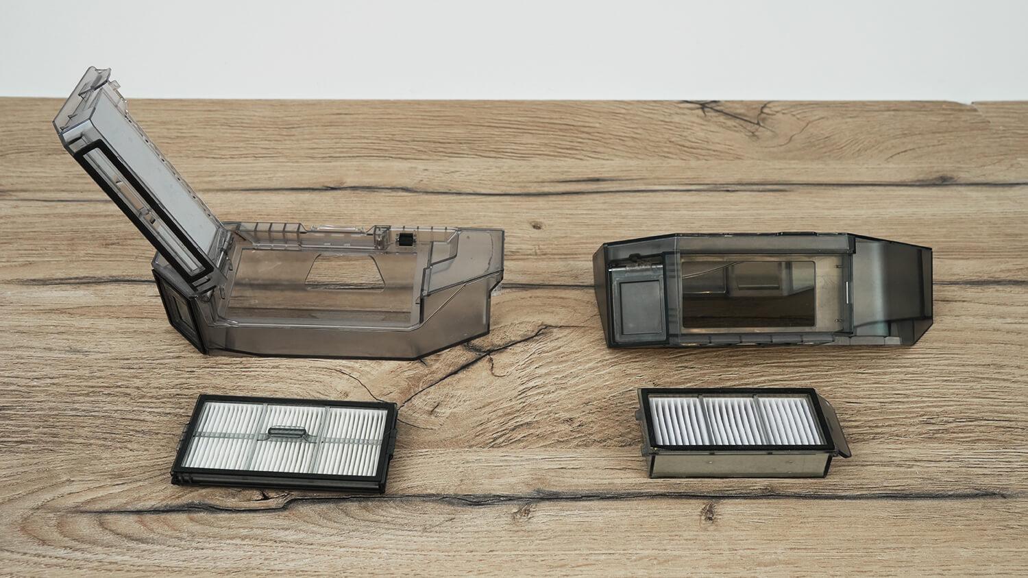 Пылесборники в обеих случаях расположены сверху под магнитной крышкой. Контейнер немного меньше у Roborock по разной информации объем контейнера от 270 до 350 мл. Тогда как у Dreame объем 395 мл. И там, и там система фильтрации только на базе HEPA-фильтра.