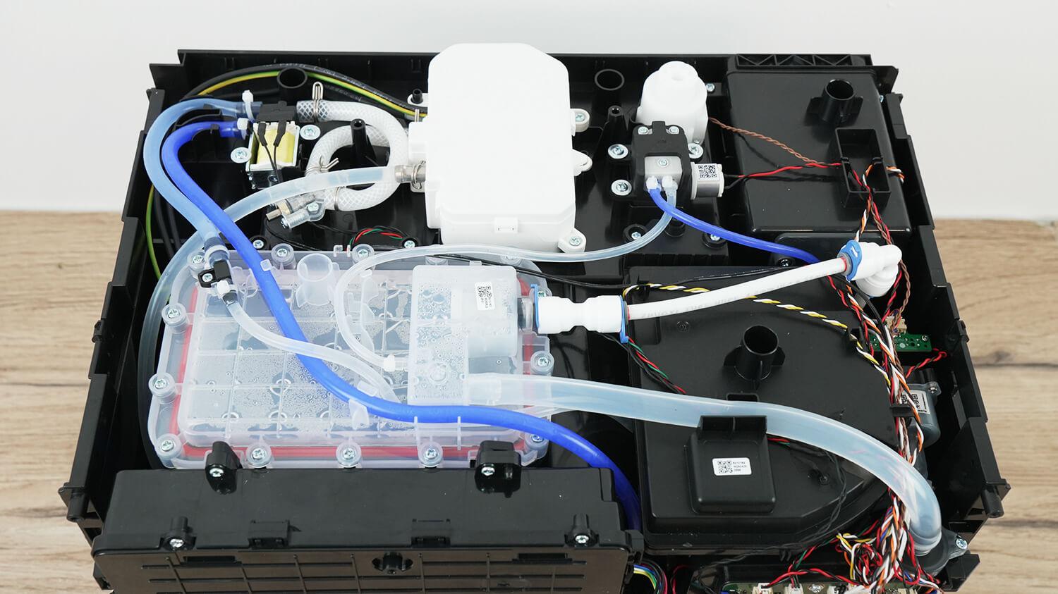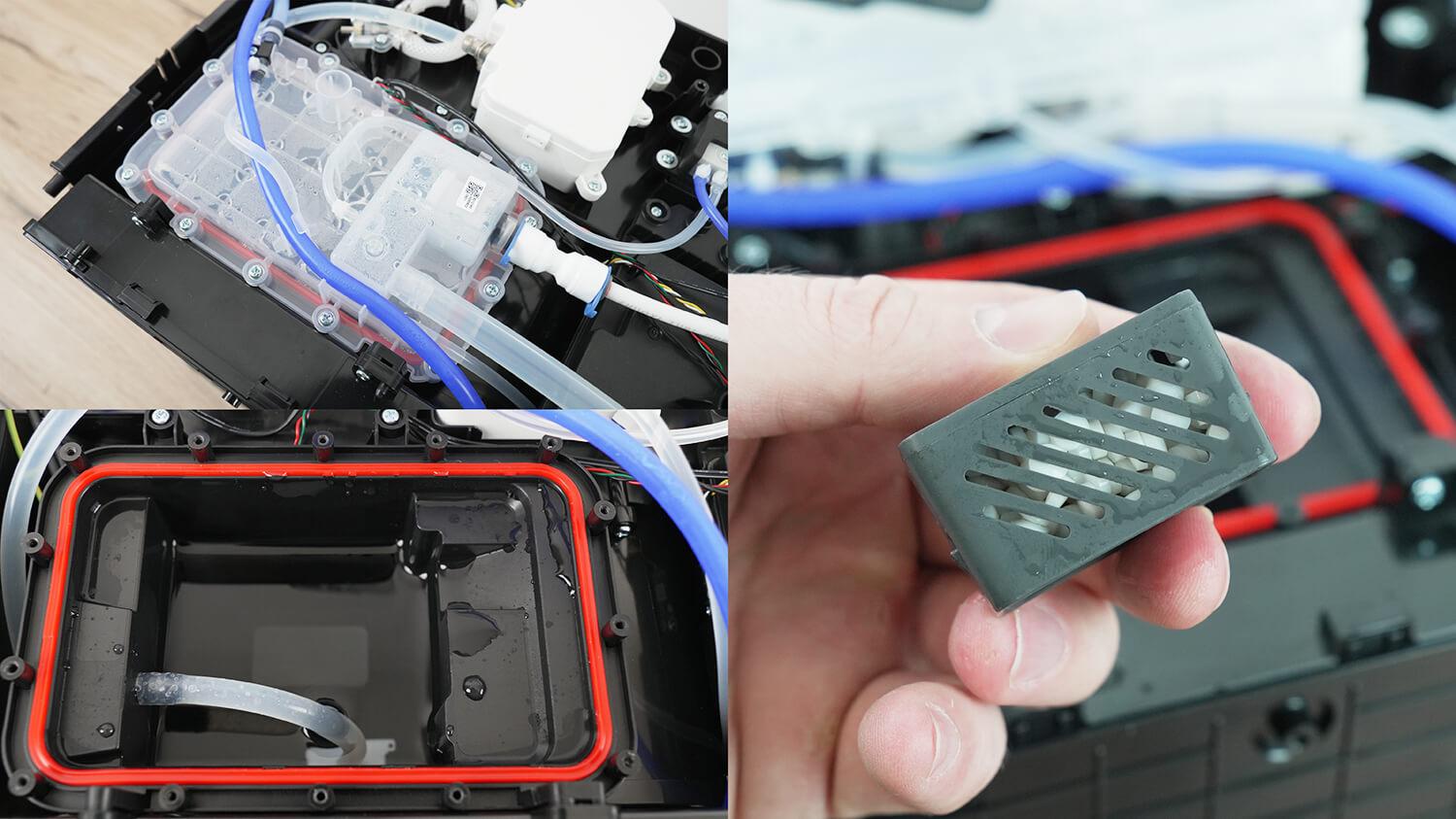 Сравнивая со станцией Dreame, вполне возможно, что данный узел вообще не требует периодической очистки. Но почему его хотя бы не сделать прозрачным, чтобы всё было видно? В любом случае рано или поздно может выйти из строя помпа или что-то ещё, и уже было бы неплохо, разобрав станцию, сразу и прочистить данный узел. В общем, двоякие впечатления от этого решения.