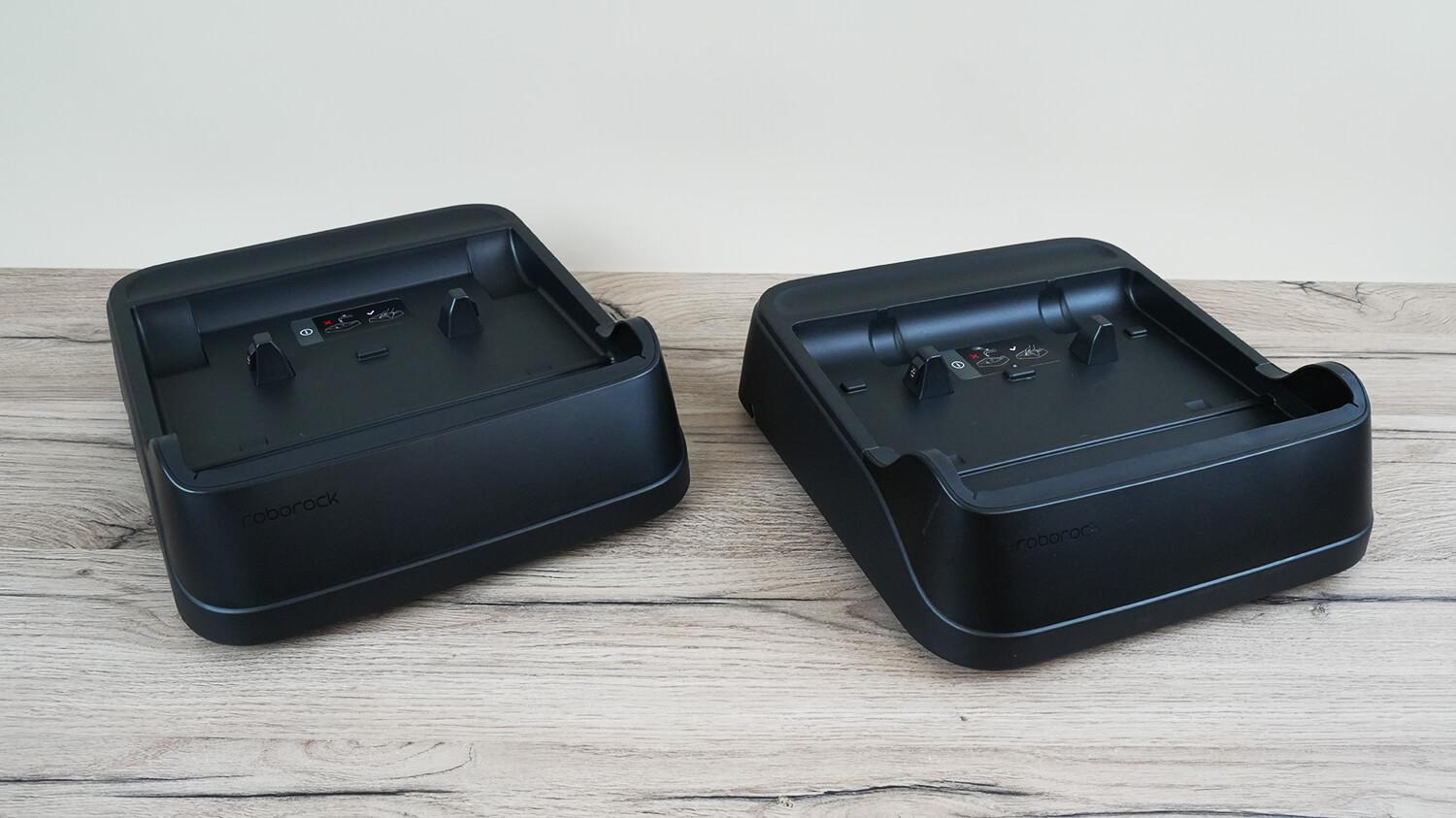 Так вот, базы не взаимозаменяемые, т.к., например, моющий пылесос с колесами не станет на базу пылесоса без колес. А пылесос без колес станет на базу пылесоса с колесами, но почему-то в моем случае он базу не видит, и зарядка не начинается. Вероятно, не стыкуются зарядные клеммы. Кроме того, базы отличаются и функционалом, а именно температурой и скоростью сушки роллера, а также наличием режима проактивной самоочистки роллера. Это когда датчики определения степени загрязнения роллера автоматически регулируют продолжительность самоочистки. Опять же, в таблице указал все отличия: