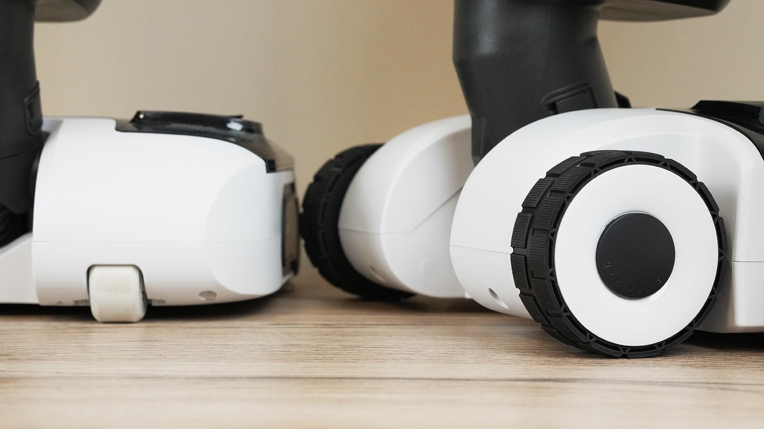Не уходя далеко от чистящих модулей, расскажу про ещё одно важное отличие между моющими пылесосами Roborock F25-й серии. Это наличие колес с приводом, которые подруливают вперед и назад в зависимости от того, в какую сторону вы ведете пылесос. Такие колеса установлены в моделях Roborock F25 ALT, ACE, ACE Combo, ACE Pro и F25 Ultra.