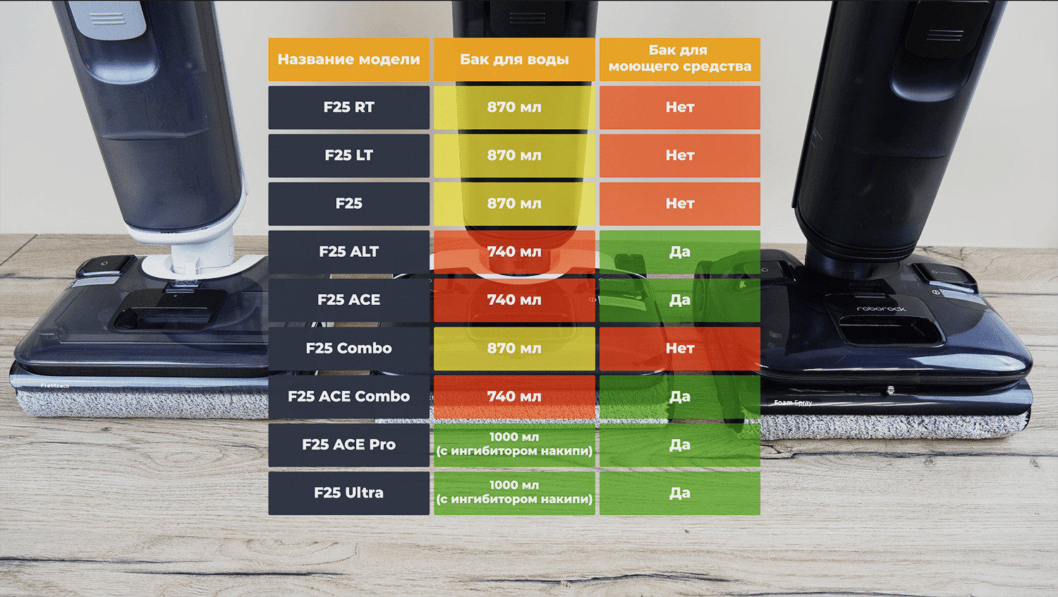 Кстати, на канале Robotobzor уже вышла видео версия сравнения, которая наглядно покажет все отличия между моющими пылесосами Roborock F25: