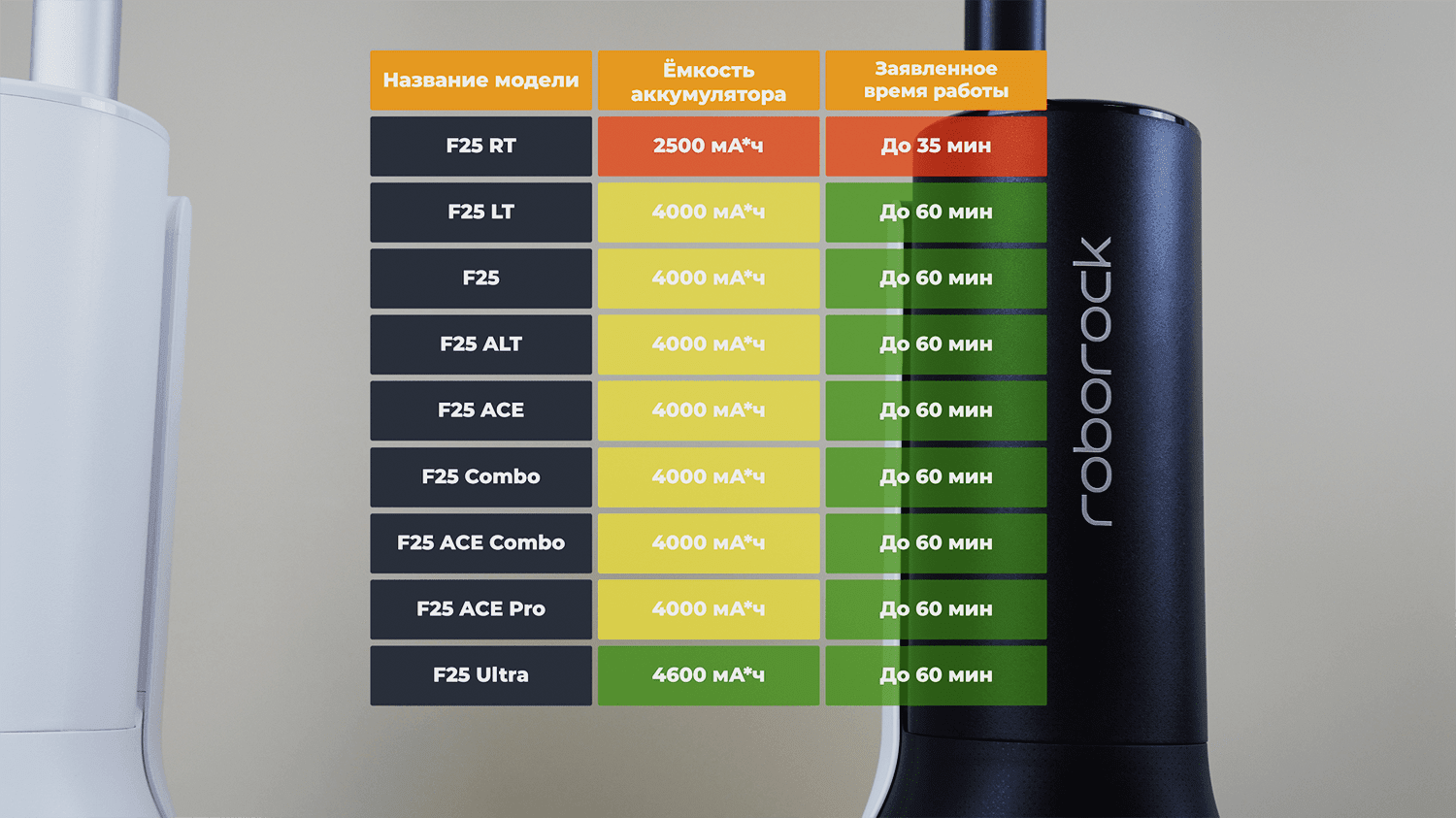 Привет всем читателям проекта Роботобзор! В этом обзоре я решил сравнить моющие вертикальные пылесосы Roborock F25-й серии. На момент подготовки сравнения на российском рынке официально представлено 9 моделей. Это Roborock F25 RT, LT, обычный F25, F25 ALT, ACE, Combo, ACE Combo, ACE Pro и F25 Ultra. 8 из 9 моющих пылесосов были мной протестированы. И вот до того, как они попали мне в руки, было очень сложно понять, в чем реальная разница при визуальном сходстве. Наверняка, этот вопрос волнует и вас. Так вот далее я подробно сравню конструкцию моющих вертикальных пылесосов Roborock F25, расскажу про отличиях в функциях и что не менее важно – сделаю сравнение результатов тестирования. Итак, поехали!