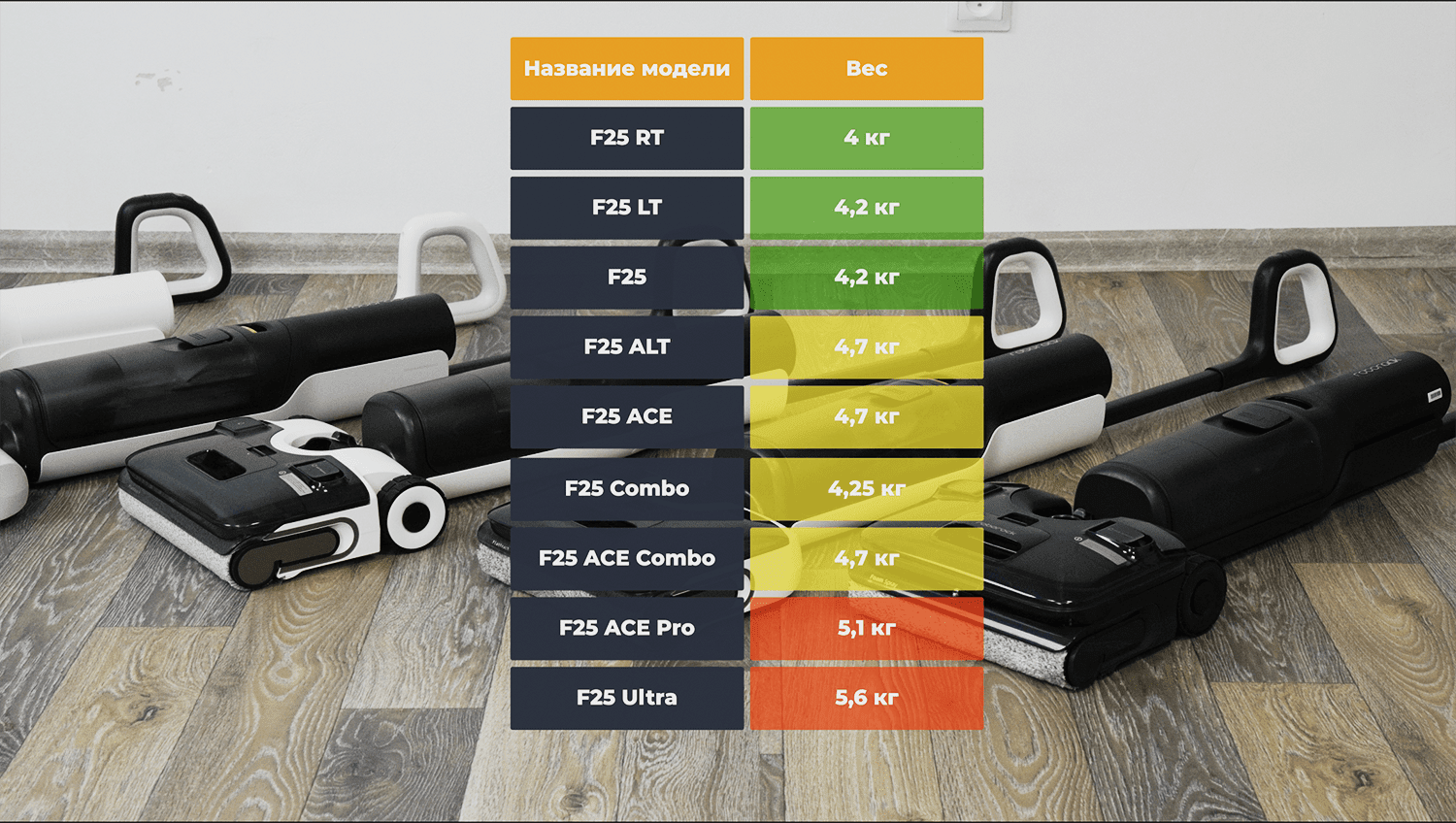 Кстати, вес у моющих пылесосов также отличается. Самым лёгким оказался Roborock F25 RT, а самым тяжелым Roborock F25 Ultra. Для кого-то это может быть важным параметром при выборе.